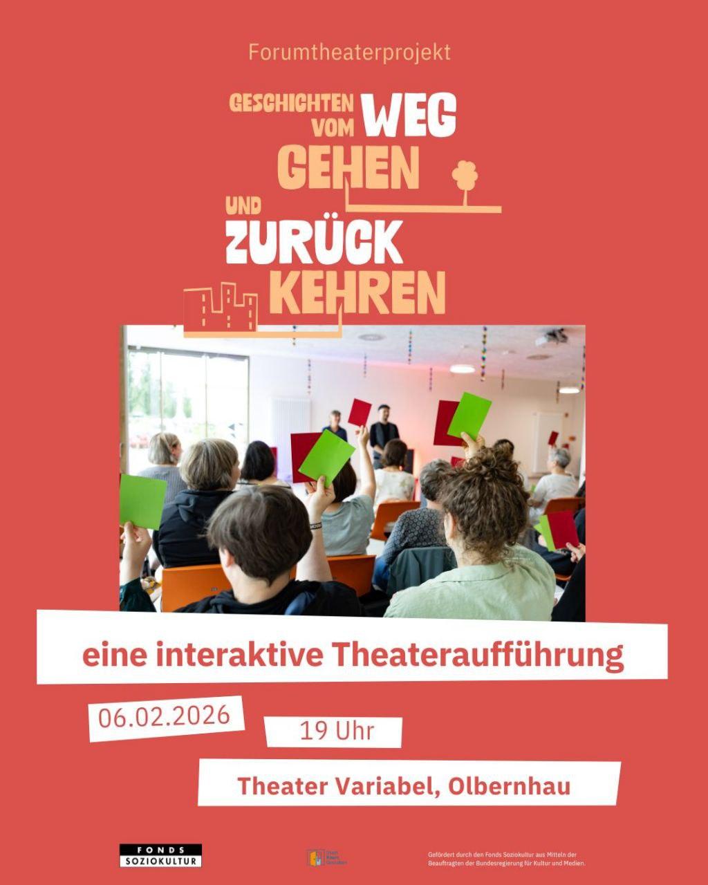Mit diesem interaktiven Theaterstück möchten wir unser Publikum zu einem Gespräch einladen: über die Entscheidung zu gehen und die Entscheidung zu bleiben.